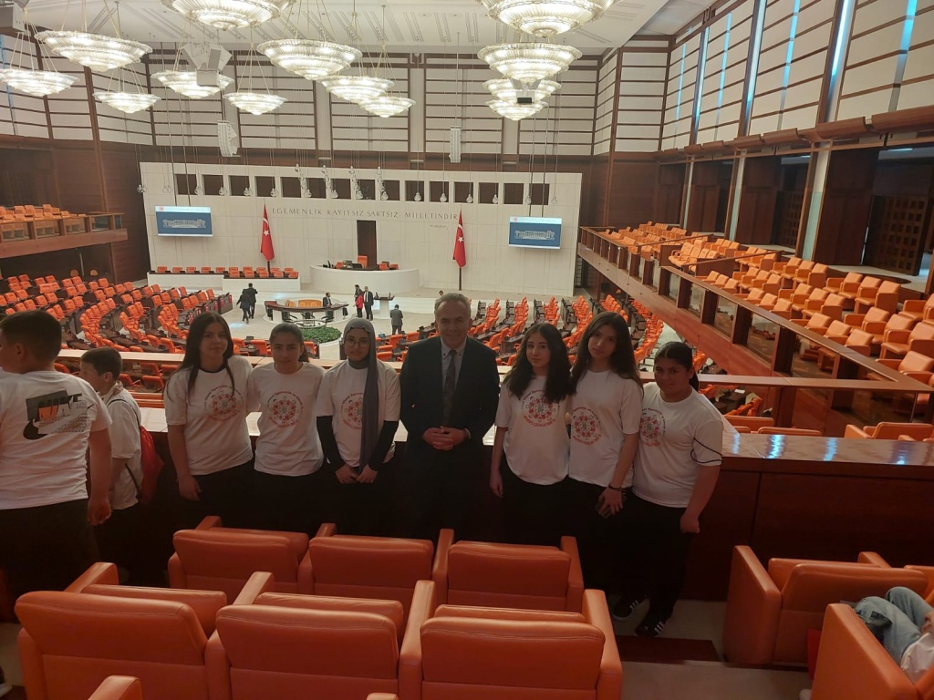 23 NİSAN ÖZEL RESEPSİYONU İÇİN ÖĞRENCİLERİMİZ OKUL MÜDÜRÜMÜZ BEYTİ BAKAR İLE GAZİ MECLİSE GİTTİLER.